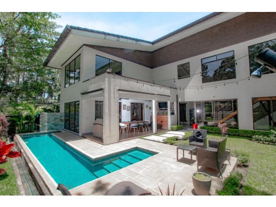 DESCRIPCION DETALLADA: exclusiva residencia contemporánea de dos niveles, diseñada con amplitud, confort y elegancia. El primer nivel destaca por su concepto abierto, cielos de doble altura y grandes ventanales que inundan los espacios de luz natural y ventilación cruzada. La zona social se integra perfectamente con la terraza, el bar y el área de barbacoa, generando una conexión ideal con la piscina y los jardines, pensada para disfrutar y recibir invitados. La cocina independiente, totalmente amueblada y equipada, cuenta con generoso espacio de almacenamiento y antecomedor. Además, los espacios funcionales aportan versatilidad al hogar. En el segundo nivel se ubican los dormitorios con pisos laminados de alta calidad, una cómoda sala de televisión y baños con acabados en mármol. Las habitaciones ofrecen vistas panorámicas al campo de golf, lo que realza el carácter exclusivo de la propiedad. El condominio Bajo Par forma parte de la prestigiosa Hacienda Los Reyes y se compone únicamente de 17 unidades, garantizando privacidad y tranquilidad. La seguridad 24/7 proporciona confianza y confort a sus residentes. Como propietario, podrá optar por la membresía del Club de Campo Los Reyes (opcional) con acceso a: campo de golf profesional, casa club, 6 canchas de tenis, gimnasio, piscinas recreativas y semiolímpicas, una propiedad ideal para quienes buscan un hogar moderno, espacioso y con acceso a exclusivas amenidades, en una de las zonas residenciales más seguras y prestigiosas de Costa Rica. Cuota condominal ₡125.000.